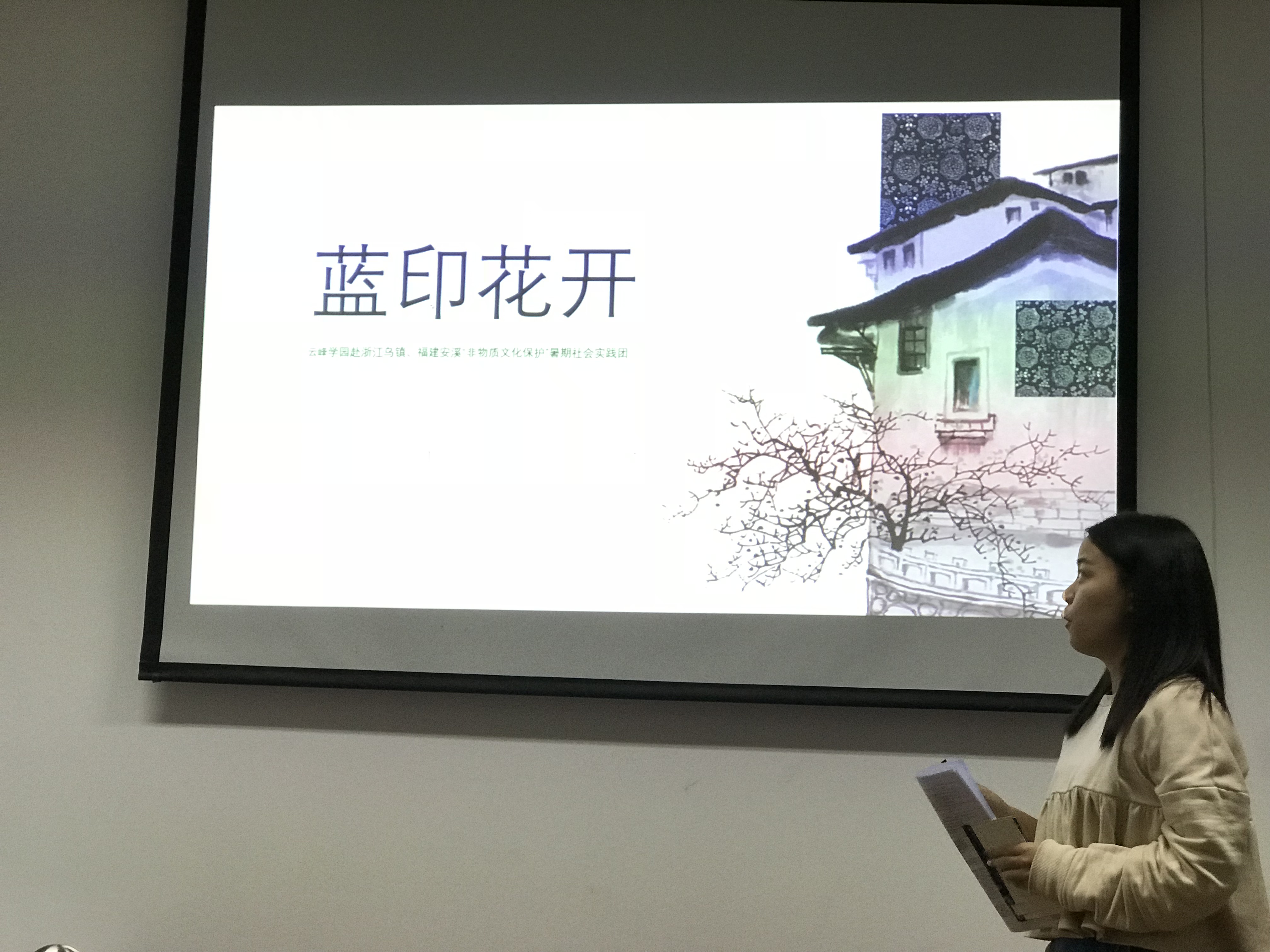 浙江大学求是学院云峰学园赴浙江乌镇、福建安溪“非物质文化遗产保护”暑期社会实践团带领大家走近传统蓝印花布的前世今生,团队成员走访杭州、桐乡、安溪三地,通过调研采访,深入了解以蓝印花布印染技艺为代表的非物质文化遗产现存状况,学习非遗背后的精神内涵,展望其未来发展,并通过志愿支教、自制明信片、宣传片等方式宣传推广非物质文化遗产,取得了良好的社会影响力。