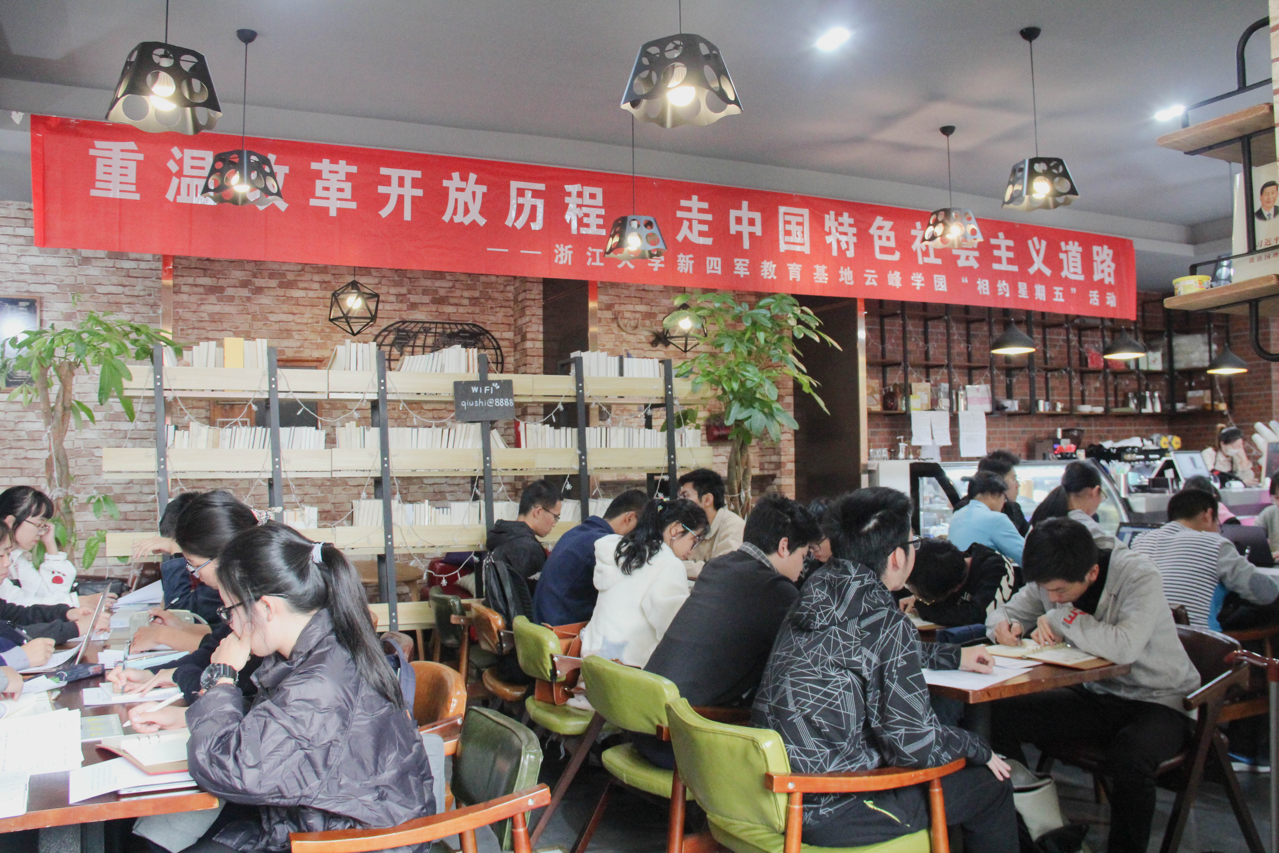 2018年11月2日下午,浙江大学新四军教育基地云峰学园“相约星期五”活动在云峰师生交流吧举行。浙江省新四军历史研究会宣讲团常务副团长程宇航老师,浙江工业大学教授、大学组组长闫梓琦老师,大学组副组长胡华军老师以及赵金云老师以及32位入党积极分子参与本次活动。
