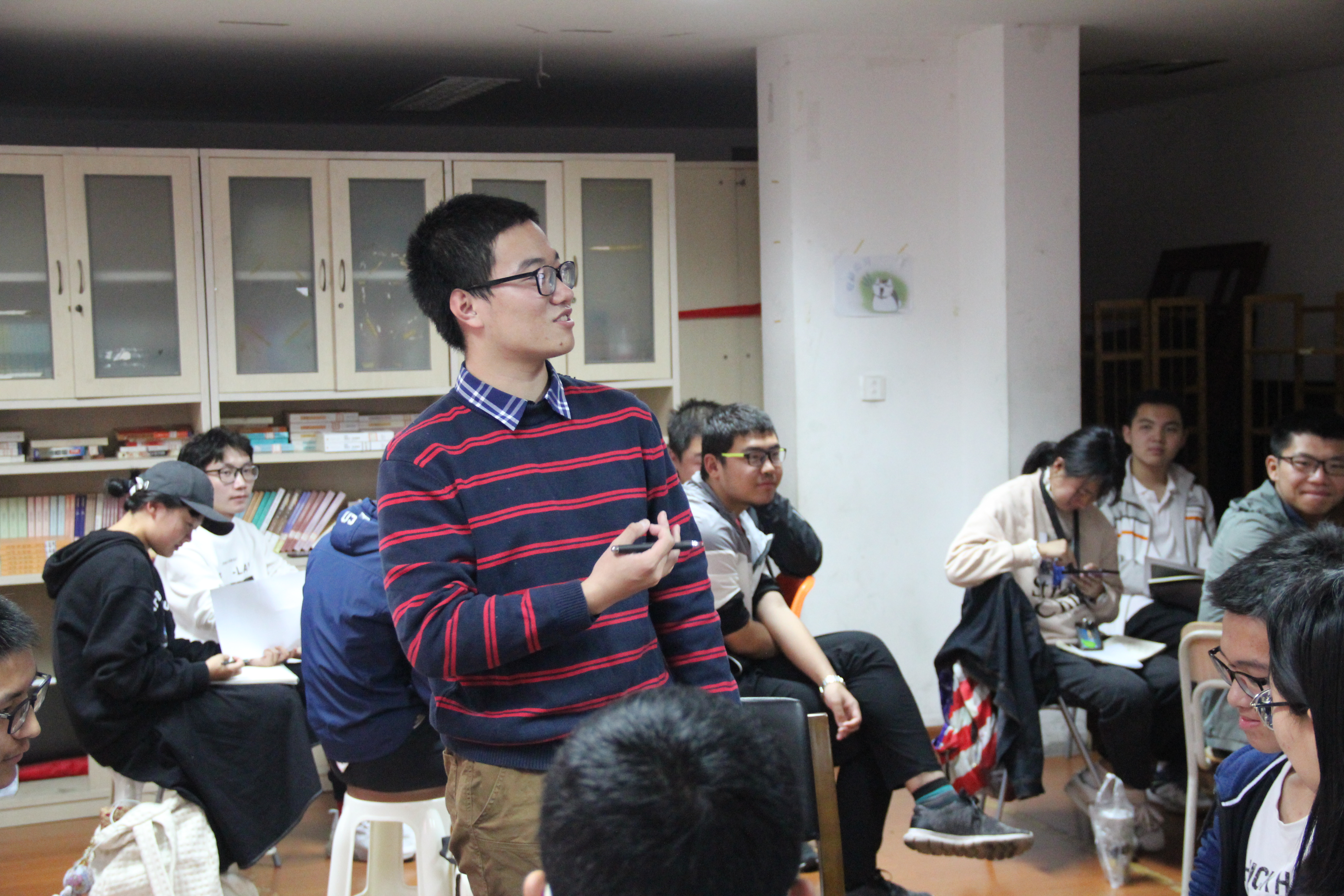随后,梁老师指导学员们正确认识并接纳自己的消极情绪。进入自由讨论环节,学员们积极参与,就生活中自己面临的消极情绪与解决消极情绪的方式交流了自己的看法,并由临时小组长总结出几个共同特点:当下大一新生所面临的主要问题包括组织社团的任务与完成课程作业的时间矛盾,以及与身边的新环境相适应的矛盾。处理消极情绪的方式也多种多样,或是听音乐、运动来转移自己的注意力;或是睡一觉、吃点心来安慰自己。梁老师对此评价:同学们能够有途径处理消极情绪是一件好事,但对部分不当的措施也同样令人担忧,比如暴饮暴食治标不治本,后期还会引发的生理问题甚至导致心理压抑。