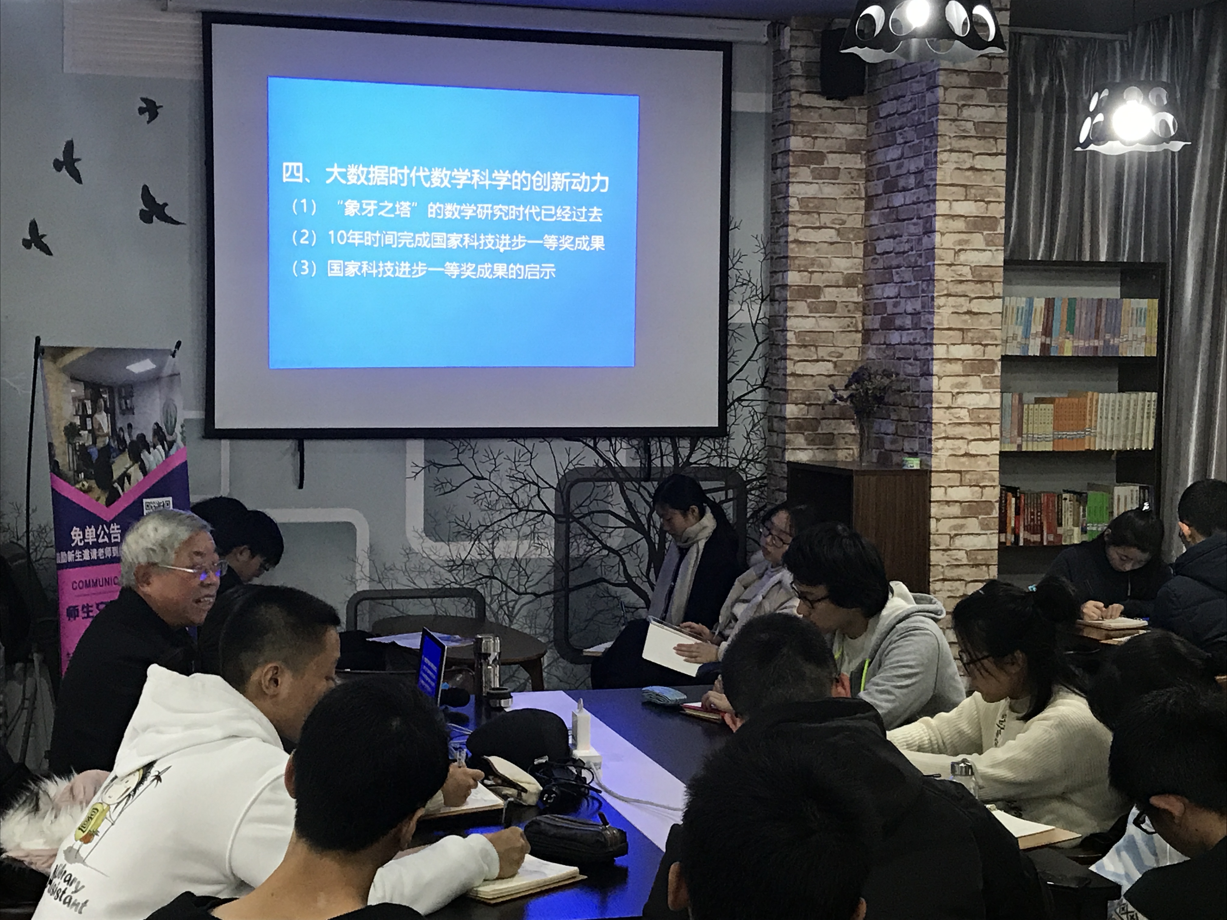 回顾历史,展望未来,刘老师有机结合历史与现实,结合时代精神、时代内涵,提出了大数据时代数学科学的创新动力。刘老师认为,“象牙之塔”的数学研究时代已经过去,我们要走出象牙塔,用自己的专业知识报效国家,服务人民。刘老师接着又用了他花十年时间完成国家科学技术进步一等奖成果的例子,向我们展示了他艰苦创业、敢于选择的前瞻性思维。尤其难能可贵的是,作为华罗庚教授的弟子,刘老师与他的妻子一起运用数据挖掘技术成功将地数学研究成果转化为企业生产成果。这给了同学们极大的启发,启示同学们应在生产实践中进行多交叉学科的学习。