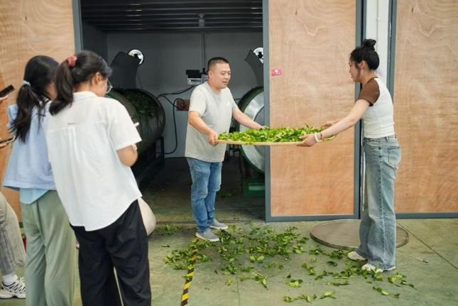 实践队员学习开筛(2025年6月26日摄于福邦茶厂)