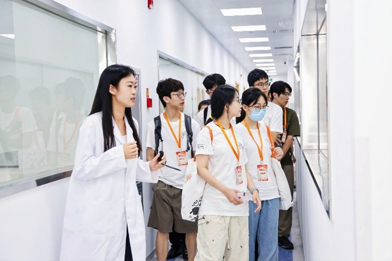 在同学们了解了实验室的基本情况后,实践队伍在相关人员的带领下实地参观了不同楼层不同领域的实验室、实验仪器、实验方向,重点了解了医用蚕丝材料科技、线粒体自噬抗衰老技术等项目,深刻体会到夏老师所说的“左手SCN,右手转化”的生动内涵。