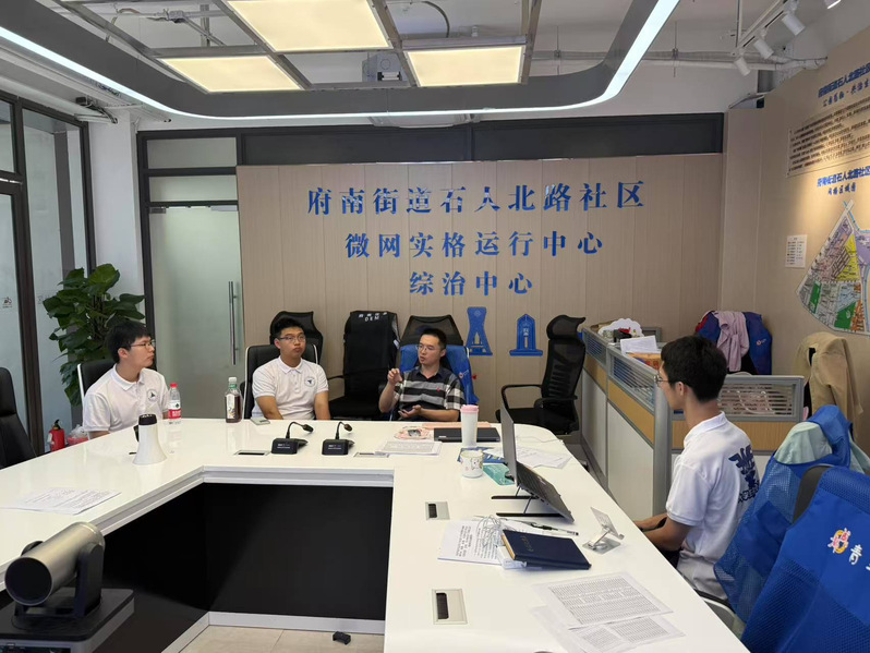 (实践团在石人北路社区微网实格运行中心与工作人员交流)