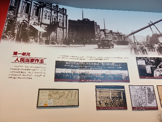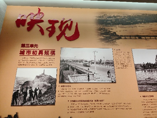 (上面两张图片为市博物馆展现新中国成立以来乌鲁木齐市发生的巨大变迁的展厅)
